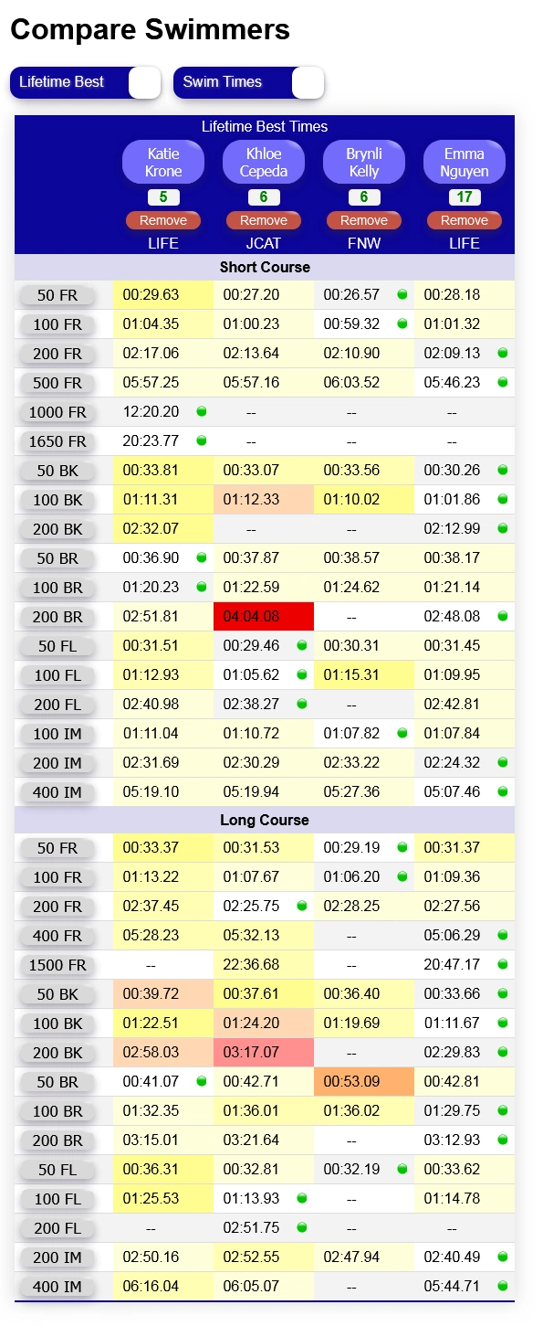 MySwimIO is also a great alternative now that swimmingrank is gone. We provide many of the features, and more, along with a modern interface and controls which is both mobile and pc friendly. Review our screenshots below to get an idea of some of what MySwimIO offers.