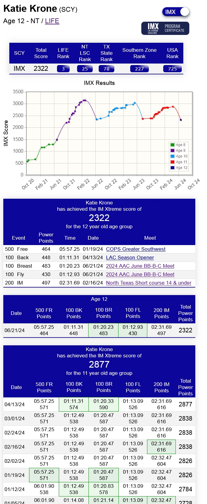 MySwimIO, pronounced 'my-swim-eo' or 'my-swim-I-O', I-O meaning Input-Output, provides USA swimming swim results and swimmer profiles, graphical analytical tools like event history, season change, relay calculators, comparison tool by date or age of swimmers, visual progress for cuts along with Age Up feature, Qualifiers for LSC Age Group championsips, Rankings by team, LSC, state, zone and USA and more. The site is written for competitive USA swimmers, coaches, and fans.